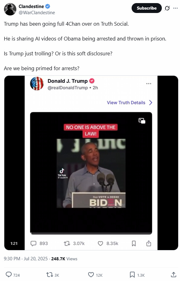President Trump has spurred a flurry of activity by posting an AI generated video of Barack Obama being arrested, handcuffed and put in jail.