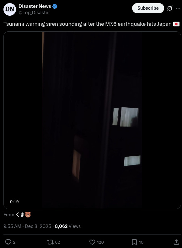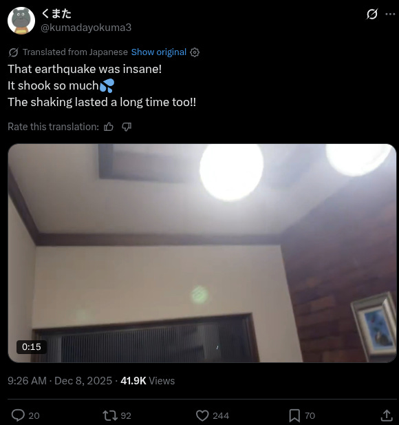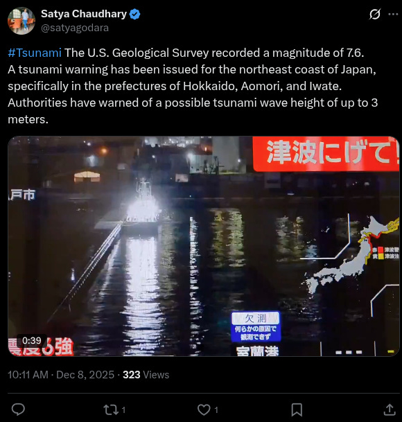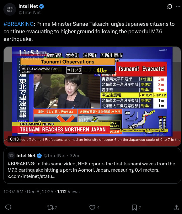 Prime Minister Sanae Takaichi told reporters that citizens in the affected areas must continue moving to higher ground following the magnitude 7.2 earthquake.