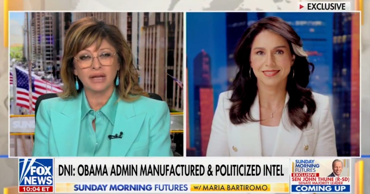 The Obama administration cooked up “manufactured intelligence” to suggest President Donald Trump’s 2016 election victory was the result of Russian interference, Director of National Intelligence Tulsi Gabbard told “Sunday Morning Futures” host Maria Bartiromo.