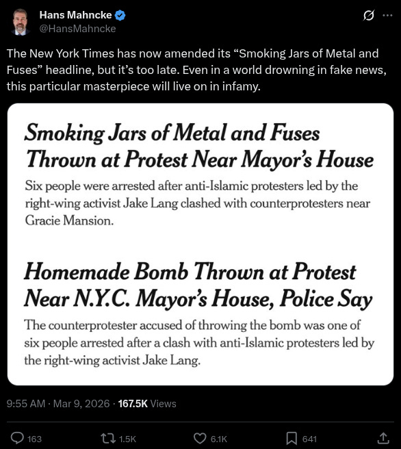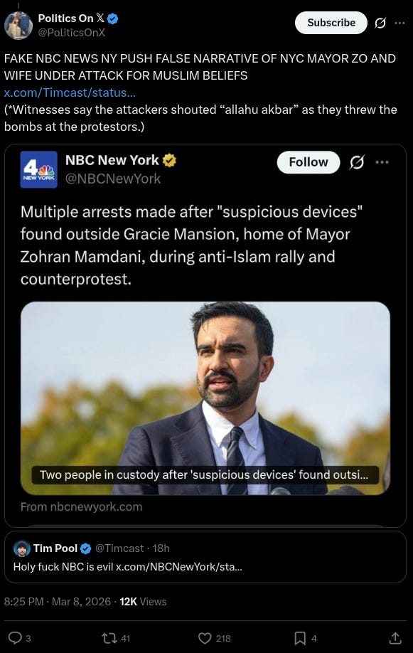 However, despite the narrative that was initially pushed by the media, the suspect who allegedly lit and threw the two improvised explosive devices near Mayor Zohran Mamdani’s official residence was actually a Muslim counter-protester.