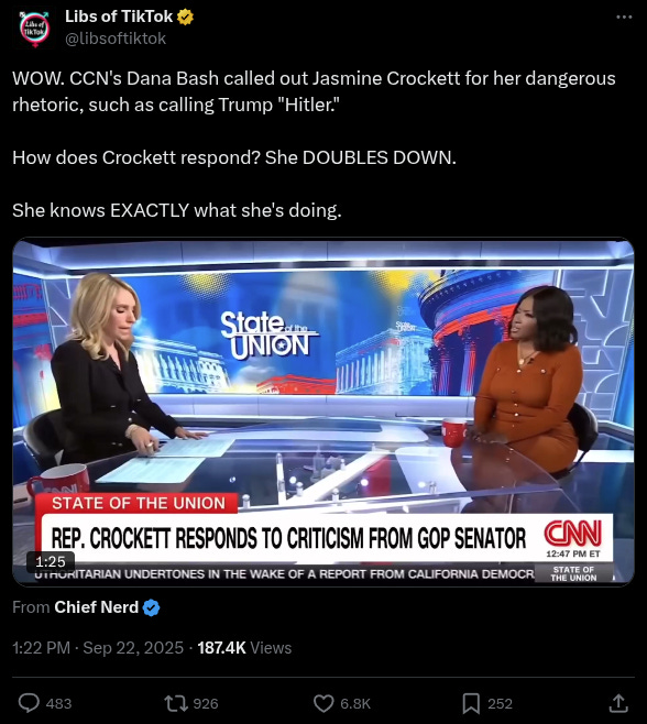 Democrats have refused to tone it down, with the likes of Rashida Tlaib and Jasmine Crockett still calling President Trump a “fascist” and a “Nazi.”