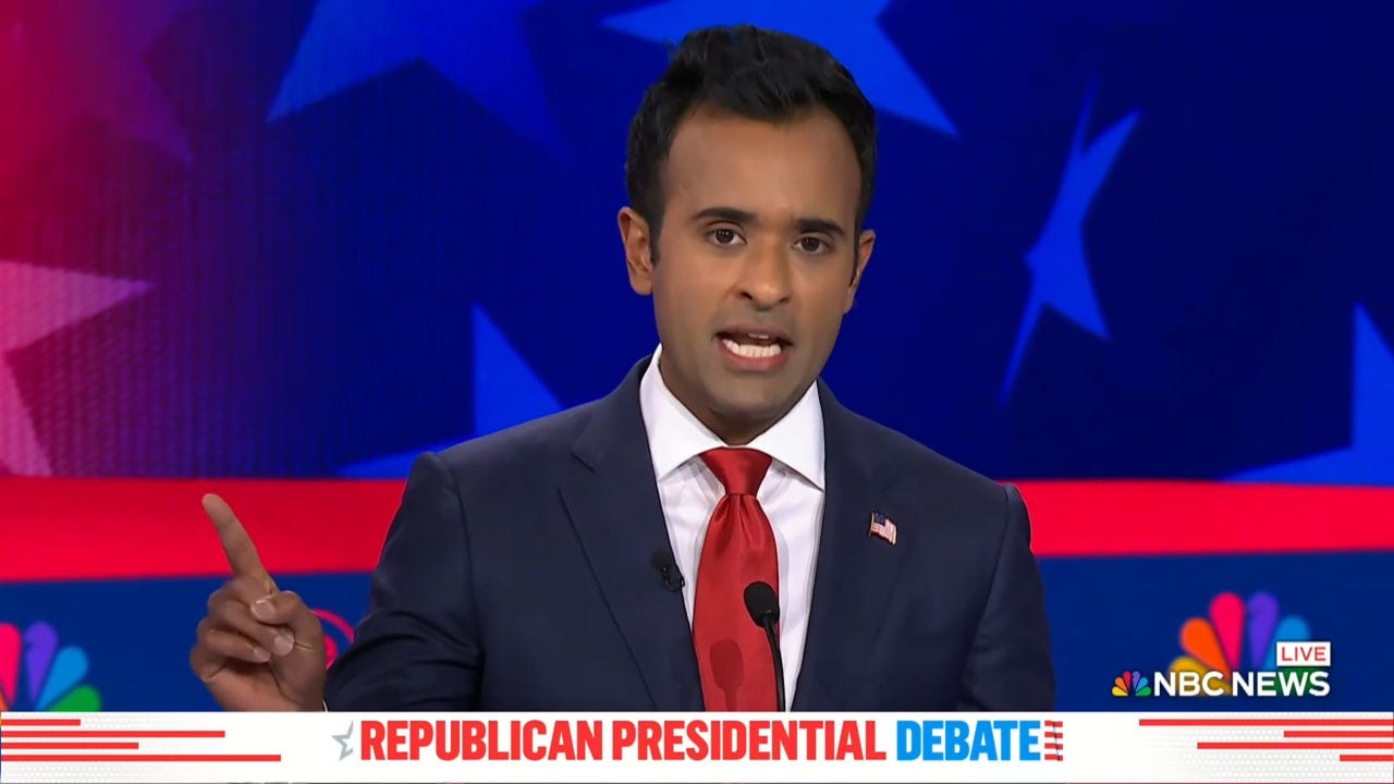Vivek Ramaswamy stole the show at the third Republican Presidential debate on Wednesday, delivering a series of buzzworthy moments. He boldly confronted NBC News anchor Kristen Welker for perpetuating 'Russiagate' and criticized RNC chairwoman Ronna McDaniel for awarding the debate platform to NBC News over personalities like Tucker Carlson, Joe Rogan, and Elon Musk. As the debate neared its end, NBC News allotted one minute to Mr. Ramaswamy for his closing statements — a minute he used to deliver remarks that took the internet by storm.