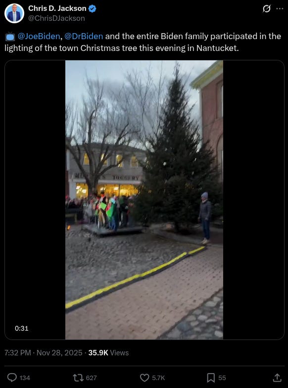 On Friday, Joe Biden was shuffling around Nantucket like a zombie before the Christmas tree lighting.