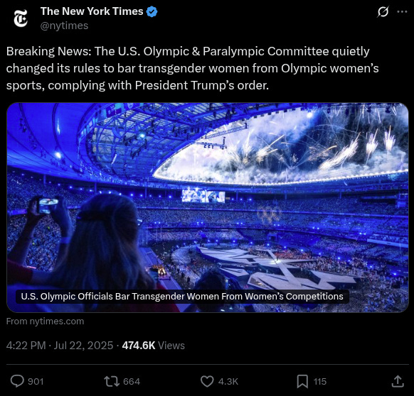 Her remarks follow recent U.S. Olympic bans on transgender women in elite female events and have drawn universal backlash from those emphasising fairness in women’s athletics.