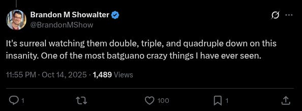 Her entire insane argument fell down with the minimal amount of probing, betraying that she doesn’t even believe what she is saying, but rather just feels the need to say it.