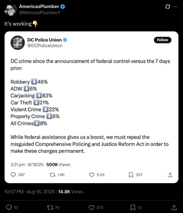 Even more DC residents expressed support and love for President Trump’s deployment of federal agents and National Guard.
