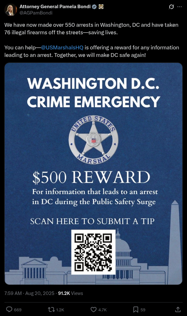 Meanwhile, White House Press Secretary Karoline Leavitt revealed during a briefing that 465 arrests have been made since President Trump’s operation in DC began.