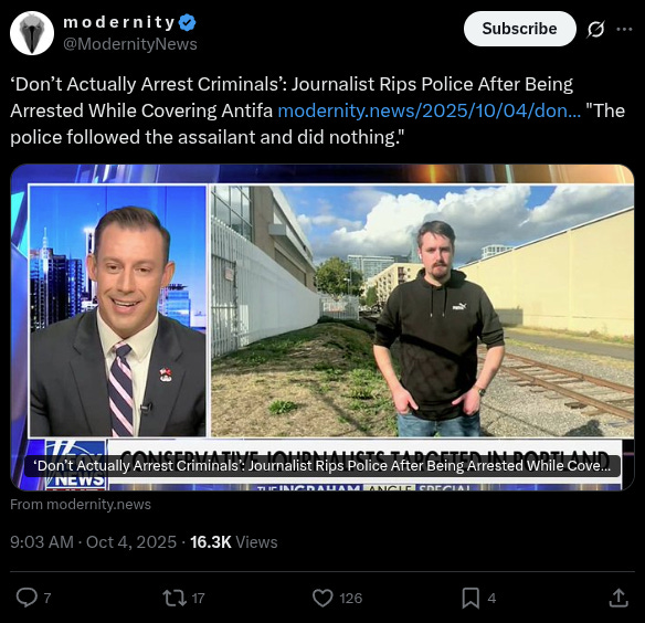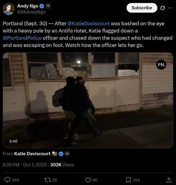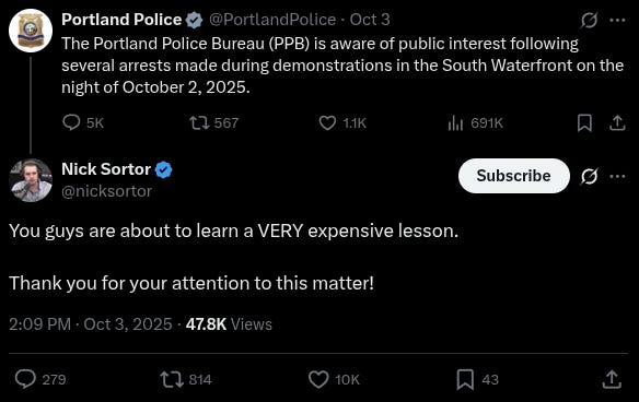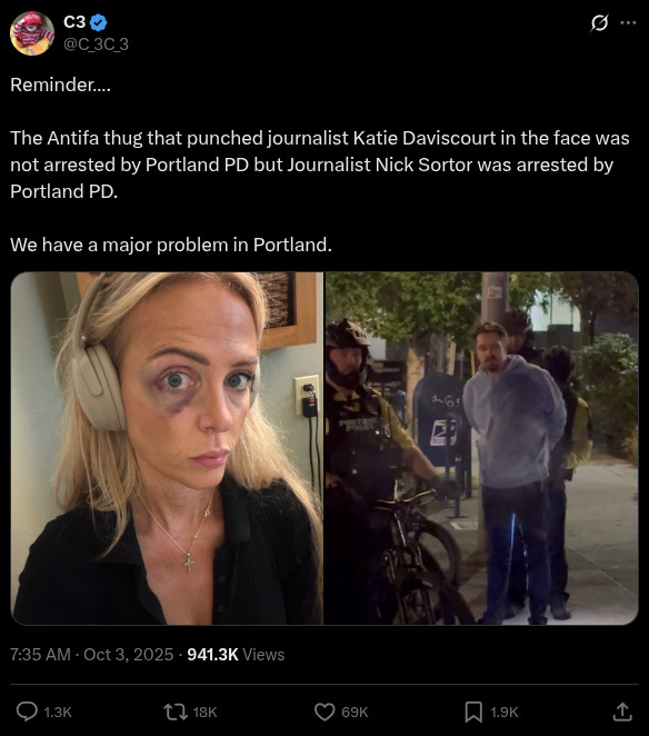 The Portland police claimed that Sortor’s arrest was not politically motivated, stating that “arrests are based on observed behavior and probable cause — not political affiliation or public profile.”
