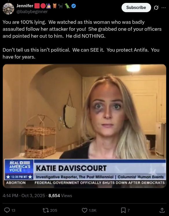 His claims are supported by allegations that the Portland Police Bureau has failed to arrest or identify individuals who allegedly assaulted other conservative journalists, including Katie Daviscourt, highlighting what he sees as a double standard in law enforcement’s response to different groups.