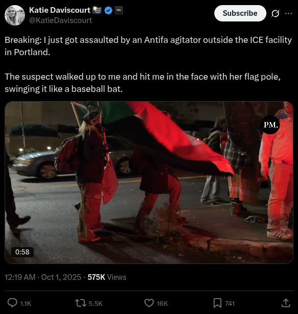 Daviscourt, a reporter for The Post Millennial, was assaulted by an Antifa militant while covering anti-ICE demonstrations outside Portland’s Immigration and Customs Enforcement facility on September 30.