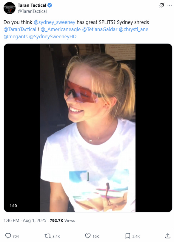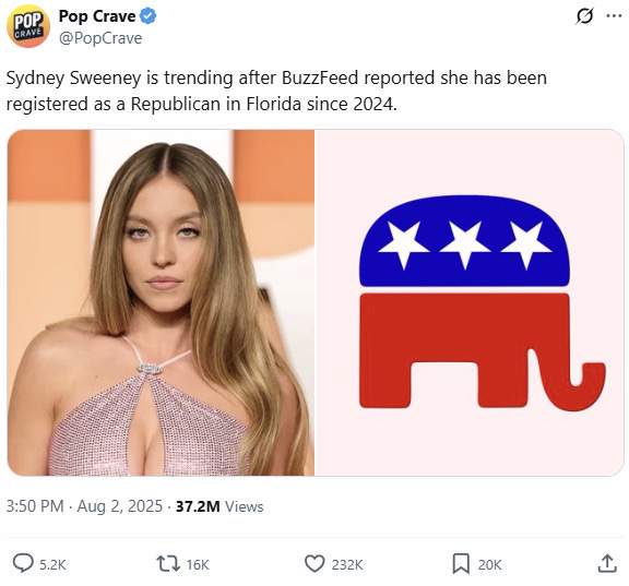 American Eagle Outfitters' ad featuring Sydney Sweeney recently confirmed all we needed to know about where the Overton Window currently sits: center-right. It marks a shift from being artificially held on the far left for a depressing decade. As a refresher, the Overton Window defines what is considered socially acceptable.