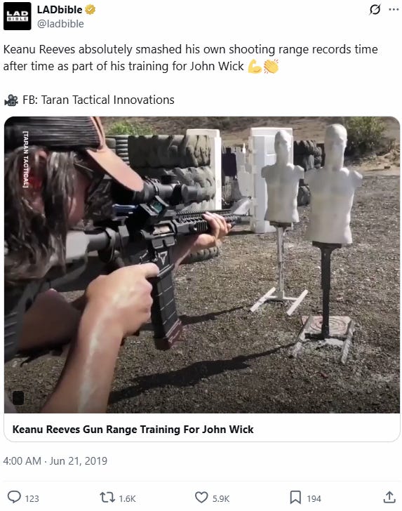 For some context, Taran Tactical is known for training Hollywood celebrities for film roles, particularly Keanu Reeves for his major part in the action movie series "John Wick."