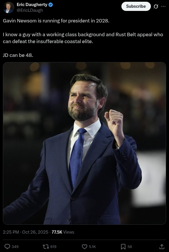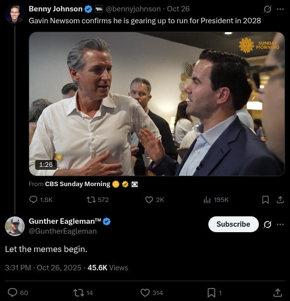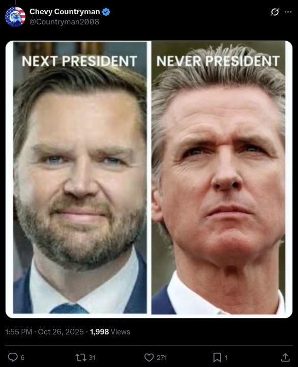 Meanwhile, Slimy Democrat California Governor Gavin Newsom has stated that he is eyeing a Presidential run in 2028, telling CBS’s Robert Costa that after the 2026 midterms, he’ll give a White House bid “serious thought.”