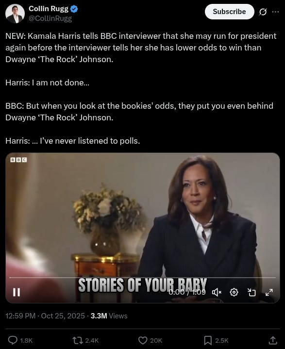 She still floated the idea, even after the BBC lady hilariously told her The Rock has a better chance than her.