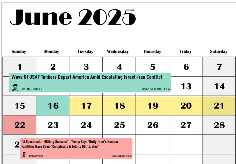 Historical precedent is very notable here: the last comparable mass tanker deployment (read report) preceded U.S. strikes on Iran’s nuclear infrastructure by five days.