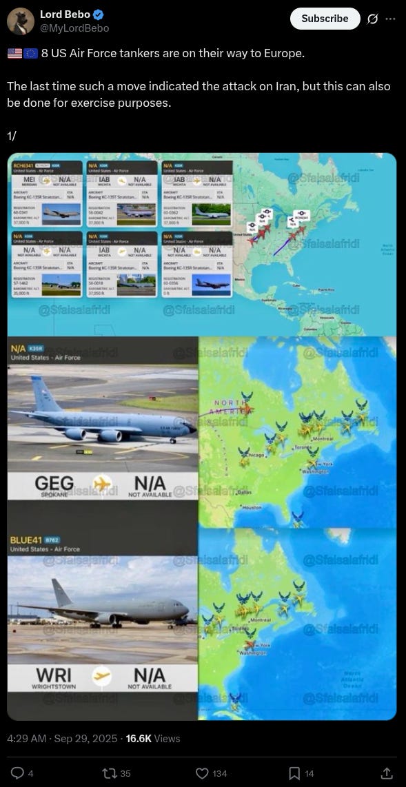 Notable and most credible X accounts have reported an immediate deployment of U.S. air tankers to Europe.