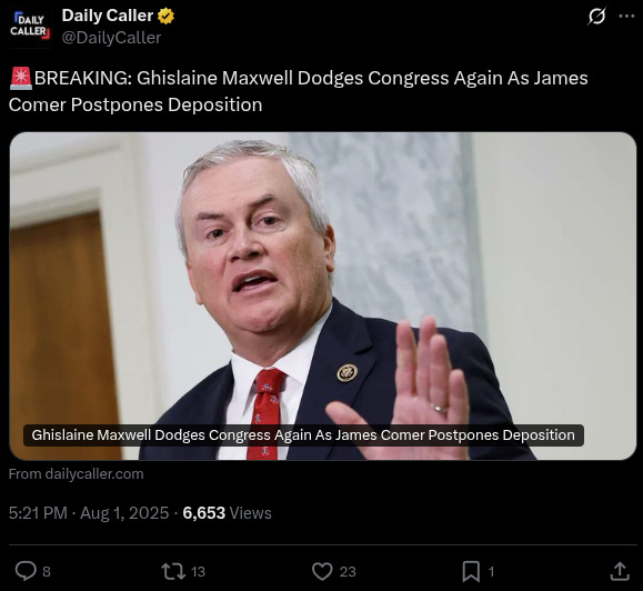 Oversight Committee Chairman James Comer announced the next day that Maxwell’s planned deposition had been postponed indefinitely at the request of her attorney.