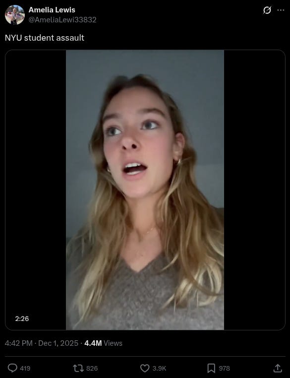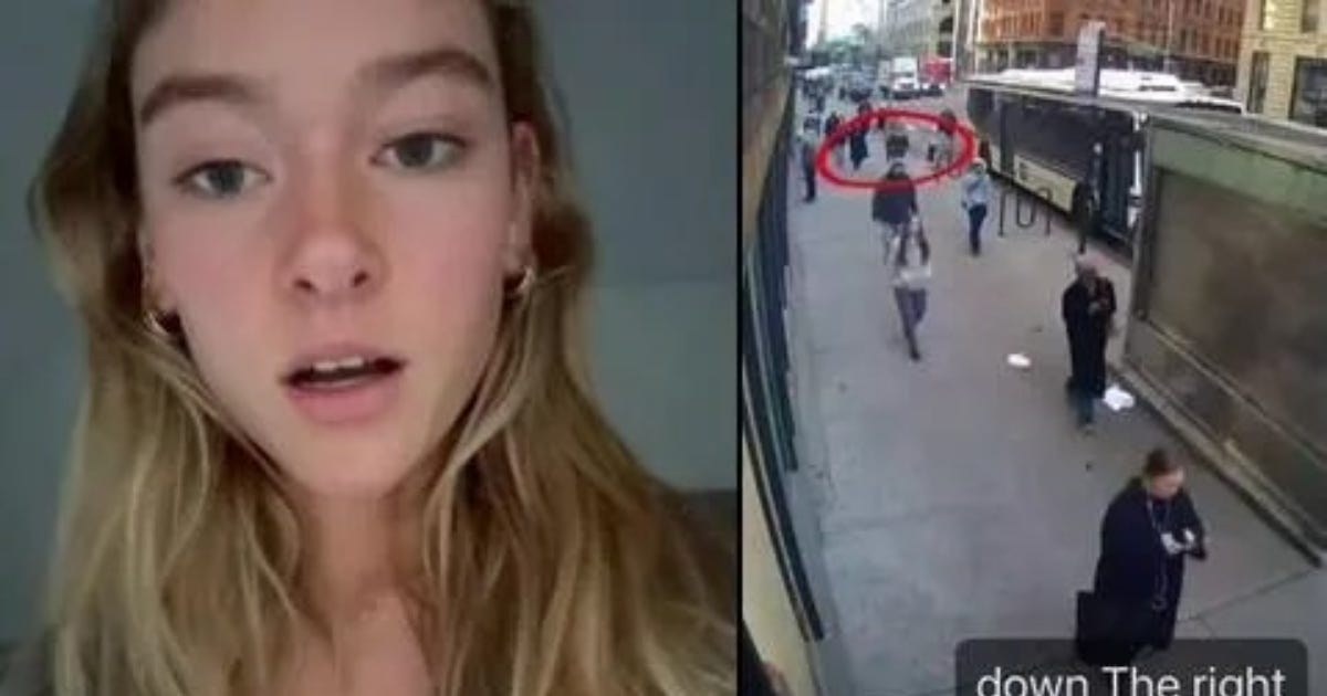 The alleged victim, Amelia Lewis, posted on TikTok about the broad daylight assault, telling her followers that she was listening to music through headphones shortly before 9:30 a.m. when a man struck her forcefully, grabbed her by the hair, and threw her to the sidewalk before fleeing.