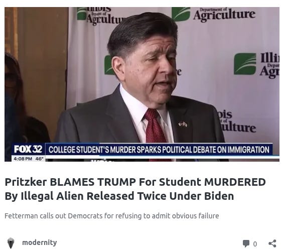 Illinois Gov. JB Pritzker responded by ludicrously blaming President Trump for that murder, as we detailed here.