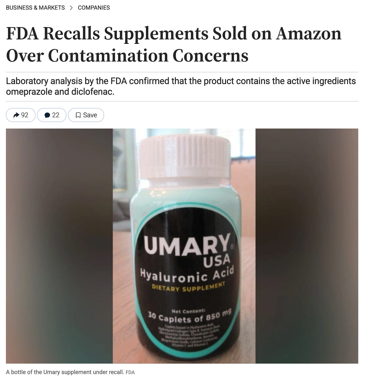 The Epoch Times previously reported that some Amazon supplements were secretly spiked with prescription drugs like diclofenac (an NSAID linked to heart attacks and internal bleeding) and omeprazole (a stomach acid drug that can cause dangerous interactions).