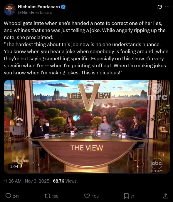 The “View” co-host, Whoopi Goldberg, lost her mind on Monday after she was caught uttering a huge lie about President Trump.