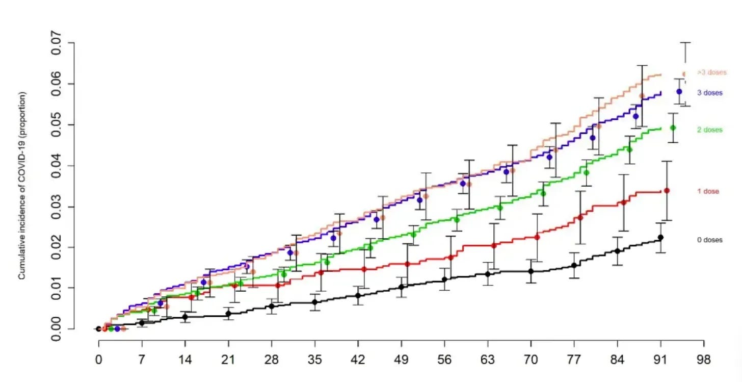 The Cleveland Clinic followed more than 51,000 people and found a stunning dose-response curve. The more COVID shots someone received, the more likely they were to get COVID.