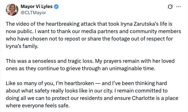 Democrat Charlotte Mayor Vi Lyles posted a statement to X apparently condemning people for sharing the footage.