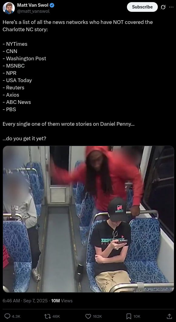 “Every single one of them wrote stories on Daniel Penny… …do you get it yet?” asked X user Matt Van Swol.