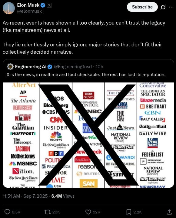 Musk noted the incident illustrates how the legacy media cannot be trusted.