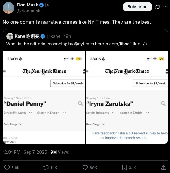Another X user highlighted how the New York Times published over 100 articles covering the Daniel Penny subway story, where he choked out a violent homeless man inadvertently killing him, while none have been dedicated to Zarutska.