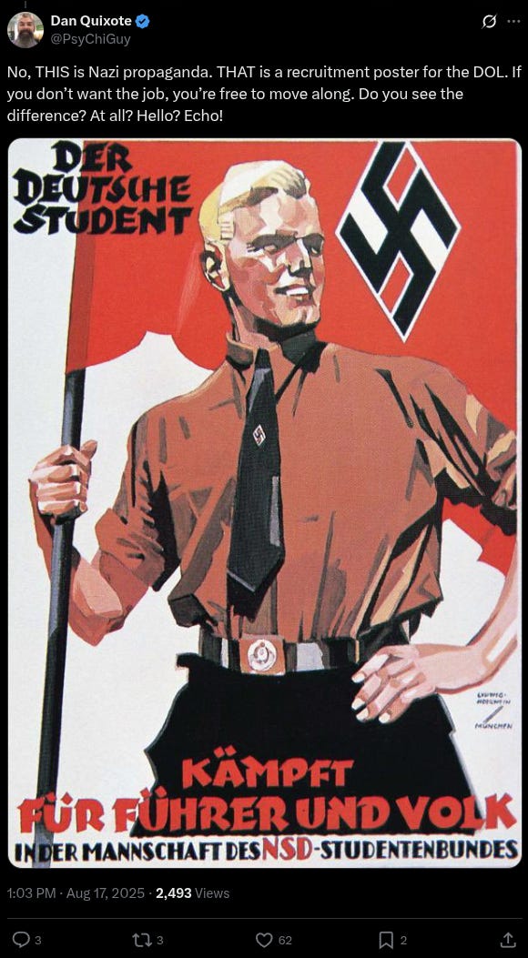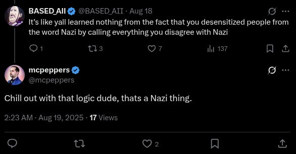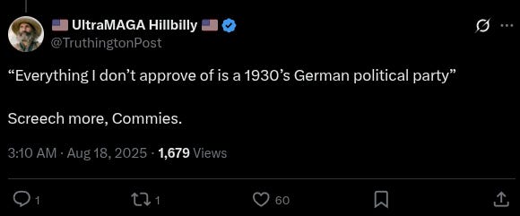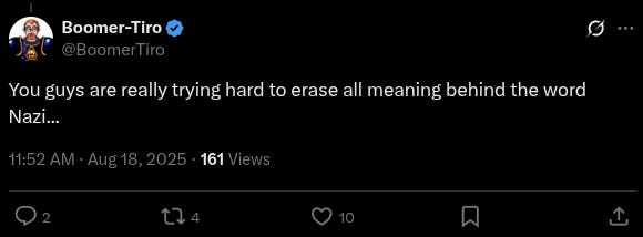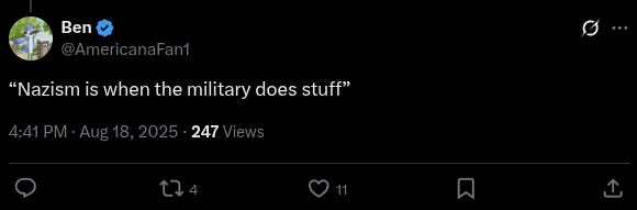 This ‘everything is a nazi’ argument isn’t going to land them on the ‘right side of history’.
